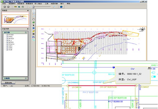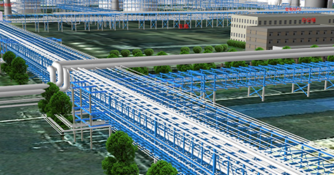 化工園總圖規(guī)劃系統(tǒng)將以原始圖紙資料為基礎(chǔ)做成的管廊、管線(xiàn)數(shù)據(jù),以二維展現(xiàn)的方式加載到系統(tǒng)中,它不僅支持海量的矢量、影像和業(yè)務(wù)屬性等數(shù)據(jù)的加載和顯示